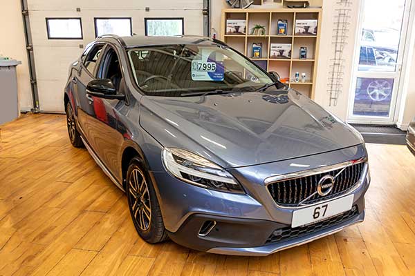 Volvo V40 D2 Cross Country SE LUX NAV, Automatic, 67 plate, metallic mussel Blue with full dark leather seating, diamond cut alloys, roof rails, black mirror housings, powered autofold mirrors, electric windows, stop/start, city safety, rain sensor, auto lighting with LED headlights, headlamp powerwash, copper dawn metallic interior trim, dual zone electronic climate control, multi airbags, remote central locking with deadlocks, dual exhausts, Sat Nav, Bluetooth, DAB radio with CD and audio remote, speech control, cruise control, speed limiter, FRONT AND REAR park assist, 86.1k with FSH. .....£7,995