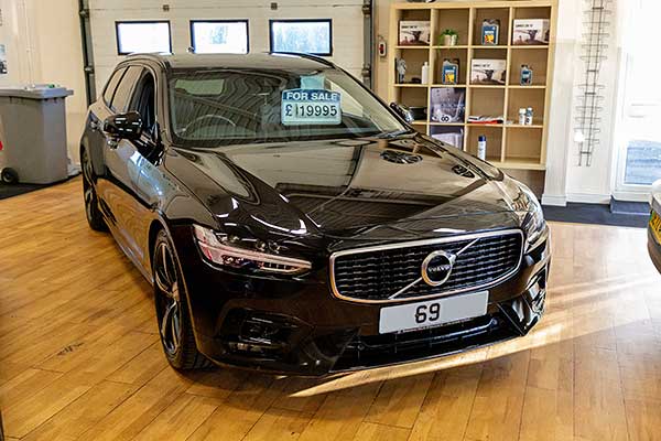 Volvo V90 T4 R-Design, automatic, 69 plate, black with half leather R-design sports seating. Front seats are electrically operated, heated and the drivers has electric memory x 2. Diamond Cut R-design sports alloys, Heads Up Display, paddle gear change, roof rails, active TFT drivers display with Sat Nav, Bluetooth, cruise control and speed limiter, dual zone electronic climate control, electric windows and autofold mirrors, Auto LED lights with active beam and cornering facility, front and rear park assist, rear privacy glass, reversing camera, rain sensor, stop/start, active safety and anti collision, lane keeping aid, distance control warning, curve speed assist, road sign information, multi air bags, remote central locking with deadlocks, powered tailgate, twin exhausts, DAb radio with aux input and audio remote, fitted floor mats, FSH with 56.2k.... ..............................£19,995
