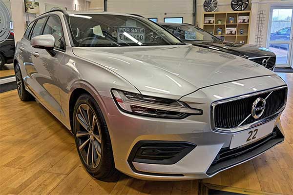 Volvo V60 B4Diesel Momentum, automatic, 22 plate, metallic silver with Charcoal textile cloth city weave seating. Front seats are electrically operated, heated and the drivers has electric memory x 2. Diamond Cut R-design multispoke alloys, Graphite roof rails, active TFT drivers display with Sat Nav, Bluetooth, cruise control and speed limiter, dual zone electronic climate control, electric windows and autofold mirrors, Auto LED lights , rear park assist, reversing camera, rain sensor, stop/start, active safety and anti collision, lane keeping aid, road sign information, multi air bags, remote central locking with deadlocks, powered tailgate, DAb radio with aux input and audio remote, fitted floor mats, FSH with 31k.... ..............................£23,750