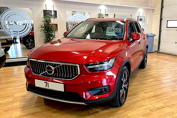 Volvo XC40 T5 Plug in Hybrid Inscription Pro, automatic, 71 plate, metallic red with full Ivory leather seating,Front seats electrically operated and heated with drivers memory function x 2., diamond cut alloys, dual zone electronic climate control, reversing camera, sat nav, bluetooth connection, USB input, stop/start, anti collision, cornering lights, speed sign assist, road sign assist, active bending lights, front and rear park assist, Auto LED lights, rain sensor, cruise control, speed limiter, autofold mirrors, headlamp powerwash, electric windows, multi air bags, remote central locking with deadlocks, fitted carpet mats, speech control, powered tail gate, rear load cover, roof rails, 15.7k with FVSH, .....£26,500