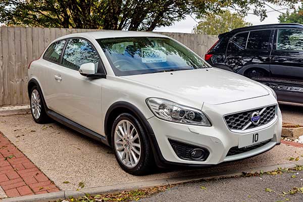 Volvo C30 2.0i SE LUX, 10 plate, White with dark grey leather seating, multispoke alloys, dual zone electronic climate control, cruise control, Radio/Multichanger CD and audio remote, electric windows, front fog lights, power mirrors, headlamp power wash, multi air bags, remote central locking with deadlocks, this is a recorded Catagory N NON STRUCTURAL DAMAGE (cosmetic damage only). THIS CAR WILL HAVE A SERVICE AND MOT at the point of sale. 87k...................£3,500
